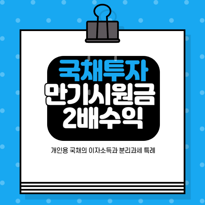 최소 투자금이 10만원이기 때문에 누구나 투자할 수 있습니다. 하지만 분리과세의 장점은 소액투자보다 고액자산가나 소득이 높은 사람이 유리한 방식입니다. 개인 국채 투자는 자산이 많아 오랫동안 묵혀놓아도 될 분들에게 맞는 투자방식인 것 같습니다.