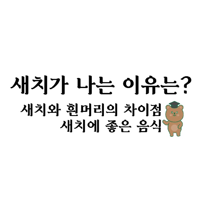 흰머리와 새치의 차이점, 새치가 나는 이유에 대해 알아보았다. 멜라닌색소 생성을 위한 규칙적인 식습관을 유지하도록 노력하는 것이 중요하며, 새치를 가리기 위한 잦은 염색과 새치를 뽑는 행위는 두피를 자극해 탈모증상이 생길 수도 있으니 주의가 필요하다.
