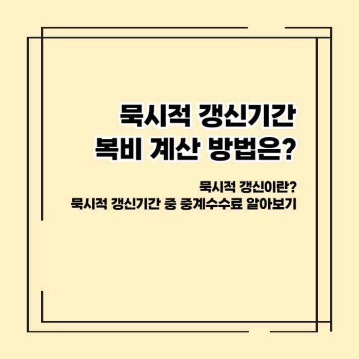 | 임차인이 중개업자를 통해 재계약을 원할 경우 | 만약 임차인이 묵시적 갱신 대신 새로운 조건으로 재계약을 원하고 이를 위해 중개업자의 도움을 받는다면, 중개 수수료가 발생할 수 있습니다. 이 경우 중개 수수료는 새로운 계약 조건에 따라 계산됩니다. |