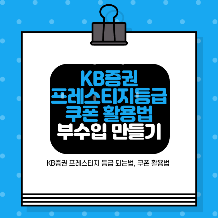 누구나 할 수있는 부수입 만들기 중 하나로 KB증권 프레스티지 등급 쿠폰을 활용하는 방법에 대해 알아보겠습니다. KB증권 프레스티지 등급 쿠폰을 잘 활용한다면 1년에 약 60만원 정도의 부수입을 얻으실 수 있습니다. 등급별 혜택과 프레스티지 등급이 될 수 있는 방법에 대해 알려드리겠습니다.